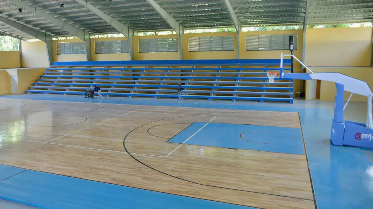 La remodelación del Polideportivo de Las Caobas incluyó la reconstrucción del techado, rehabilitación de la cancha, reparación de baños, gradas, iluminación, pintura general, tableros reglamentarios y adecuaciones estructurales.